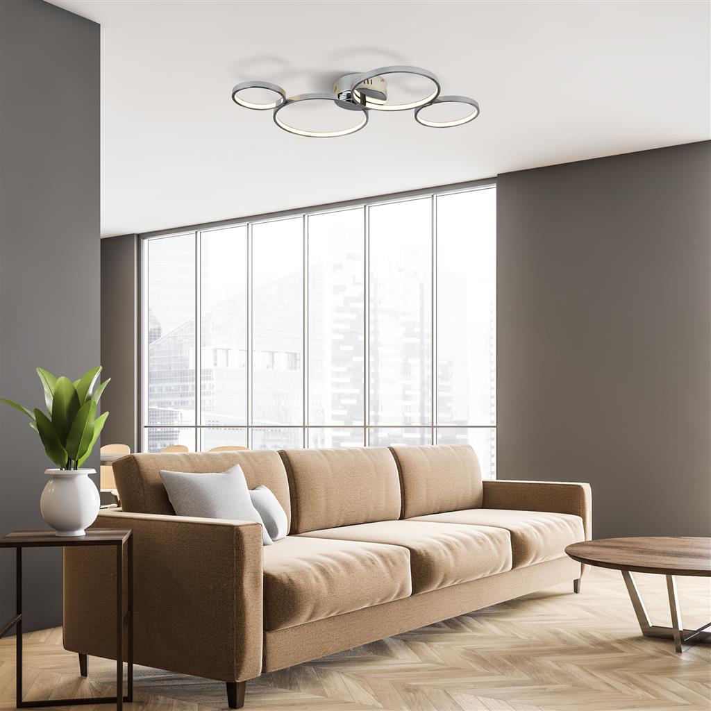 Relax in style by adding this Solexa 4 light ring ceiling flush to your lounge areas. The varying in size rings attach to a chrome base which will rest elegantly from your ceiling. With the lights pointing in different directions, a generous spread of light will brighten your home. LED's use up to 75% less energy and last up to 20 times longer than incandescent bulbs,