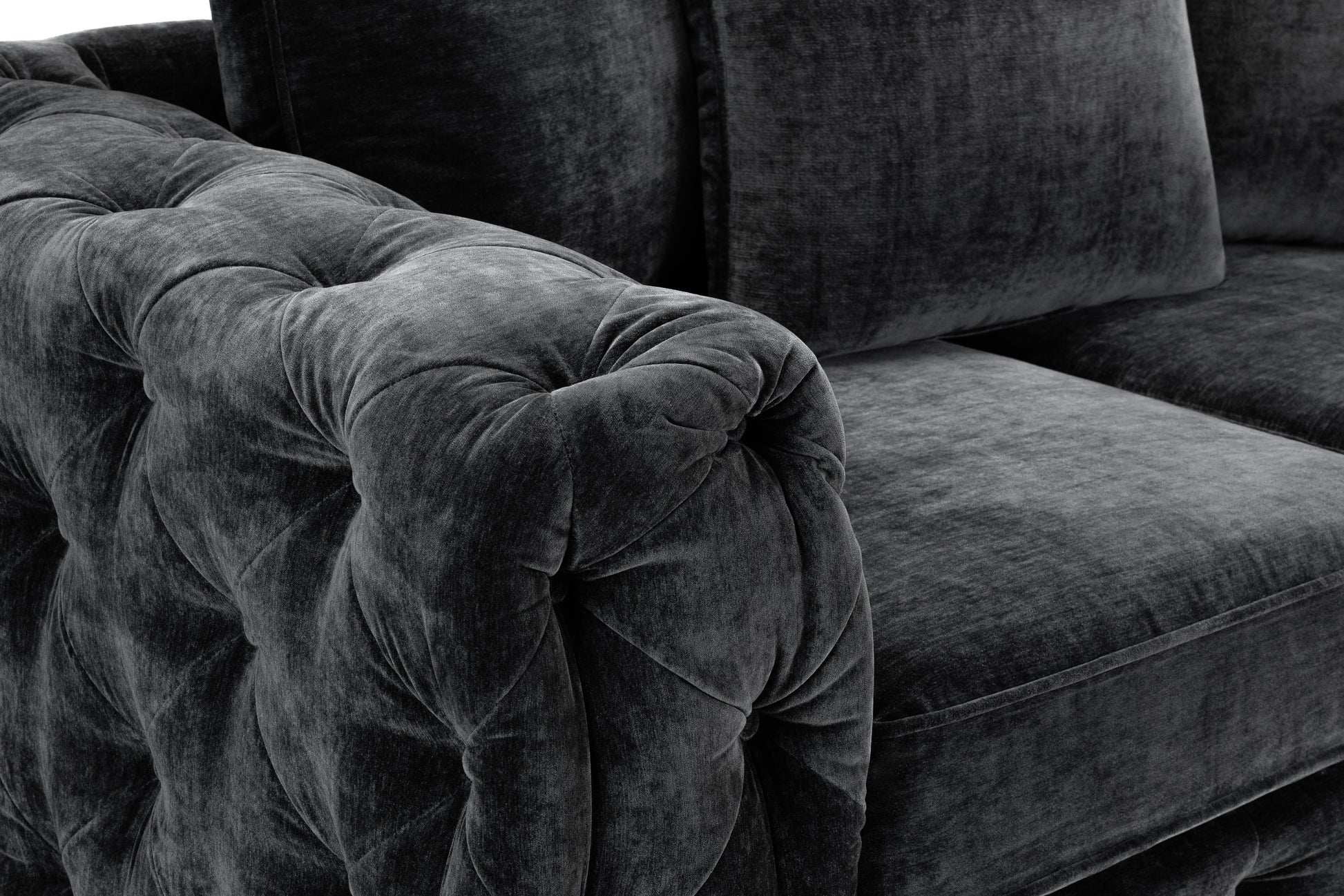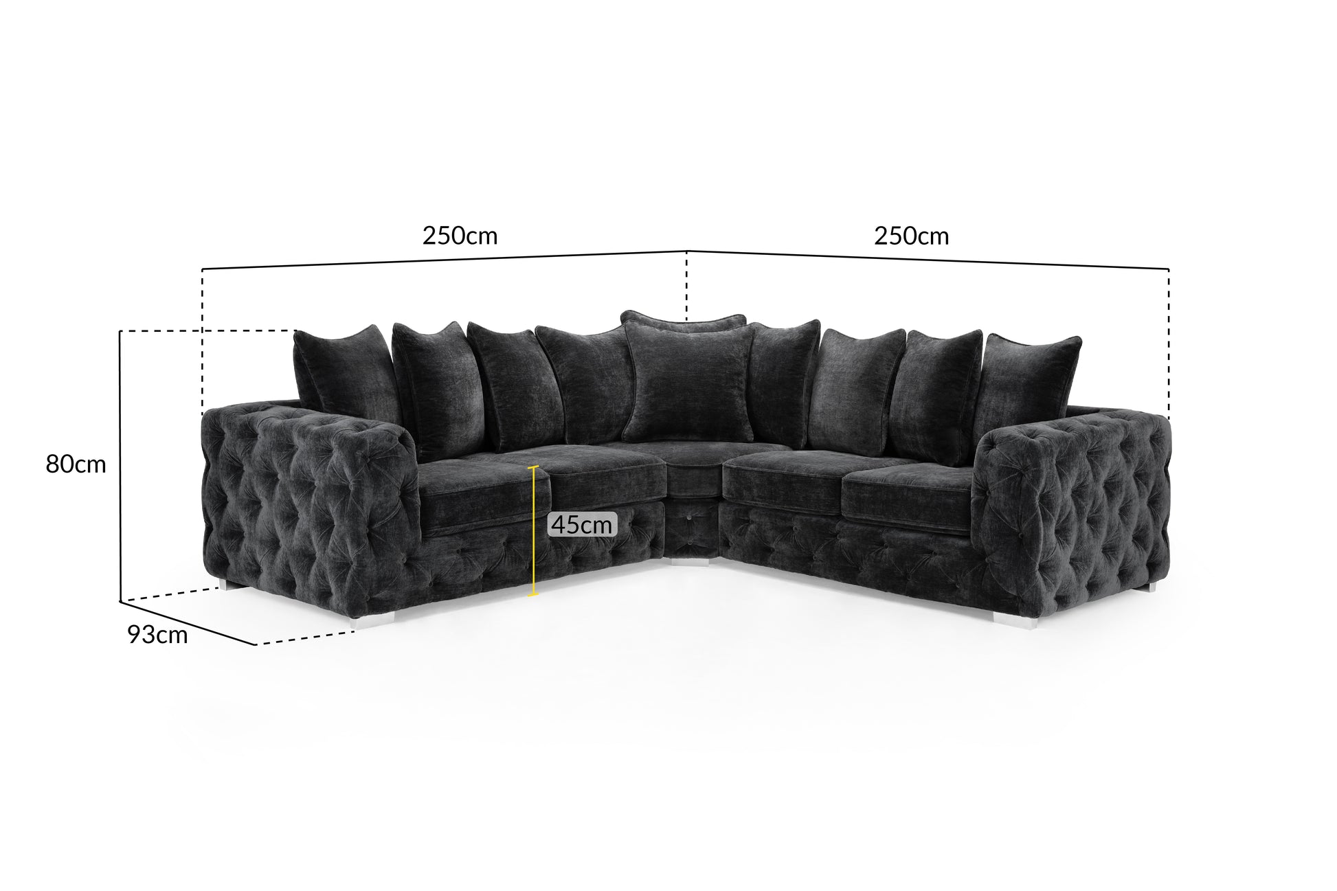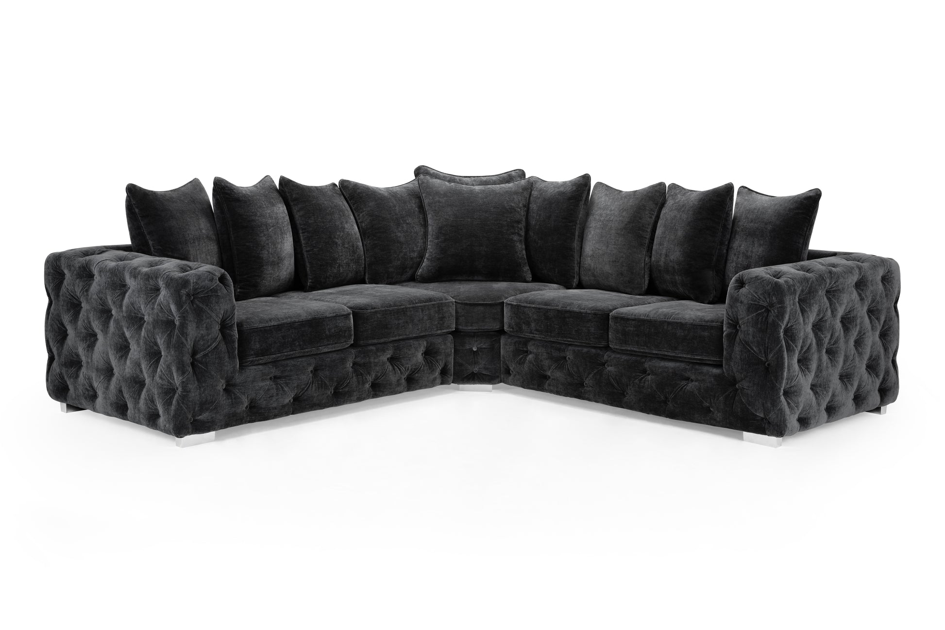 This modern, beautiful large corner set features a magnificent button-tufted design making the Sanford a luxurious choice. With high-quality foam-filled cushions and a sumptuous Slate plush fabric finish, this sofa is as comfy as it is classy.